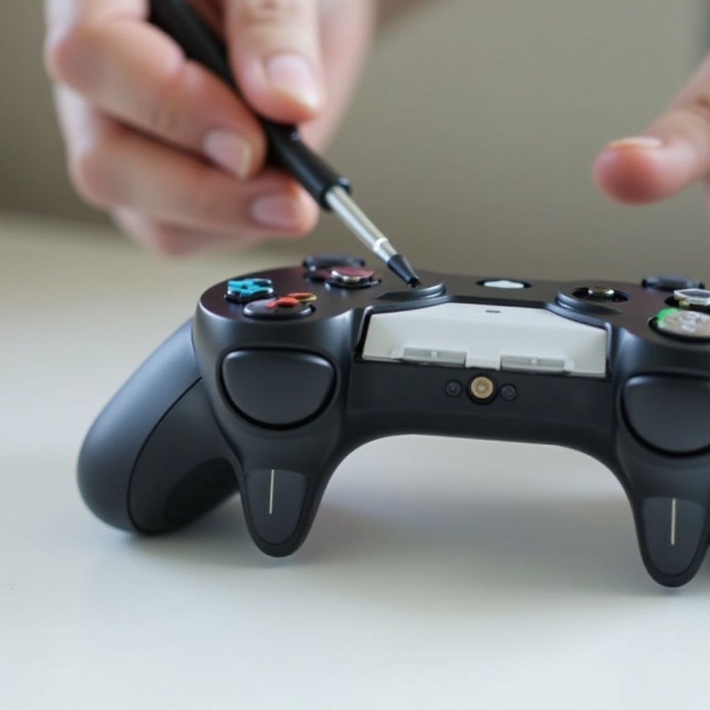 - Localisation et Retrait des Vis: Retournez la manette pour exposer les cinq vis à l'arrière. Utilisez le tournevis Torx pour les retirer soigneusement et conservez-les dans un endroit sûr.