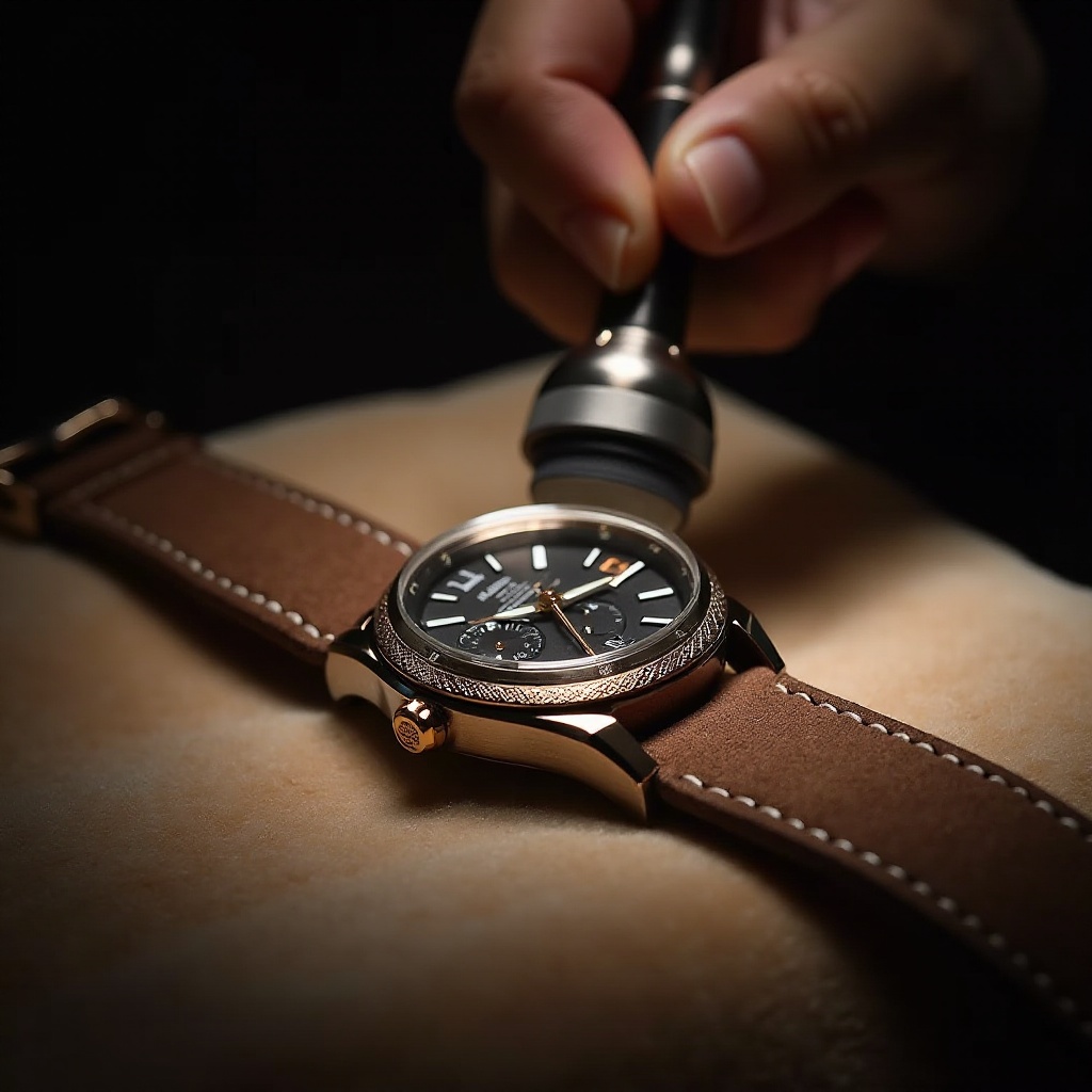 Les montres avec surfaces en métal brossé exigent une manipulation minutieuse lors du retrait des rayures. Le processus généralement recommandé est le re-brossage délicat pour redonner à la surface son apparence originale. Utilisez un tampon de polissage adapté, en suivant toujours la direction du grain du métal pour éviter d'aggraver les dommages. Dans certains cas, un kit de reconditionnement peut être utile, offrant des outils spécialement conçus pour traiter les surfaces en métal brossé.